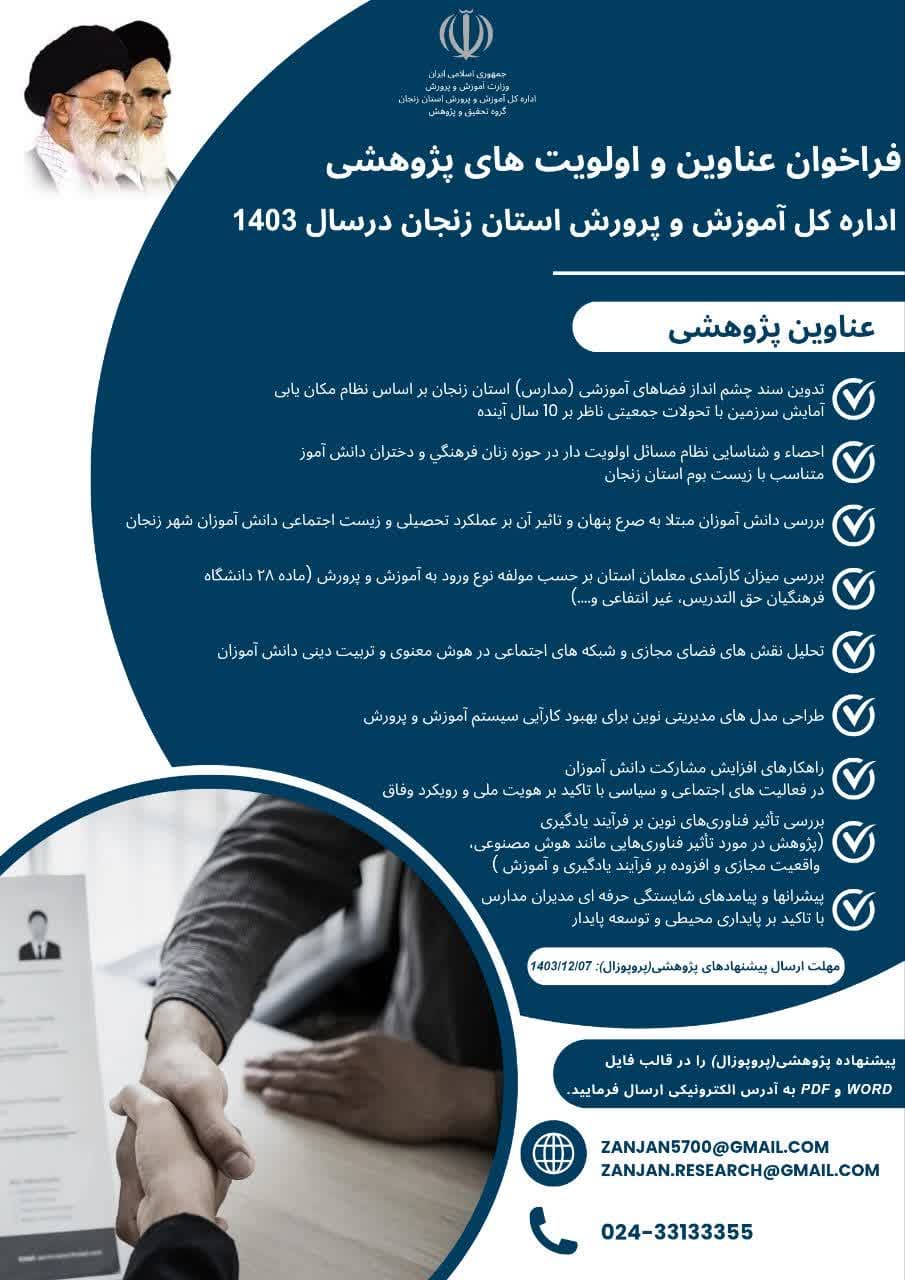 💢فراخوان اولویت های پژوهشی استان زنجان در سال تحصیلی ۱۴۰۴-۱۴۰۳